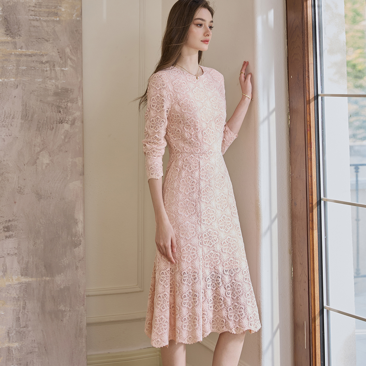 膝下から裾にかけて優雅に広がるマーメイドラインが、女性らしい美しいシルエットを演出します。
