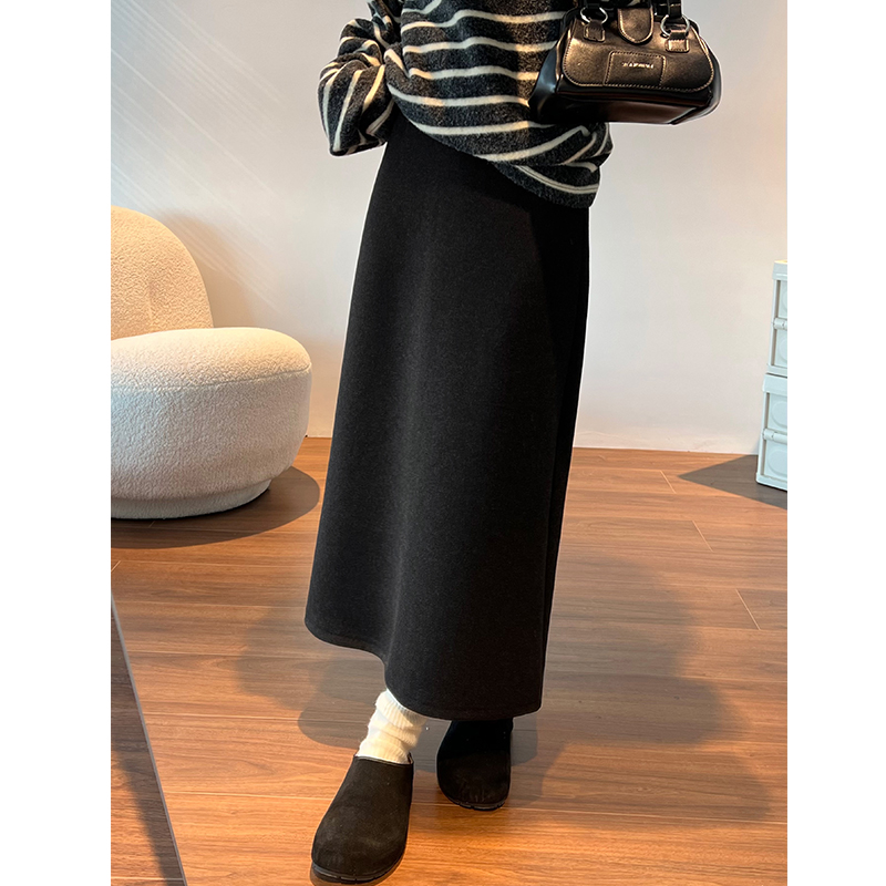 ロング丈のマーメイドシルエットが上品な印象を与え、秋冬シーズンに大活躍します。