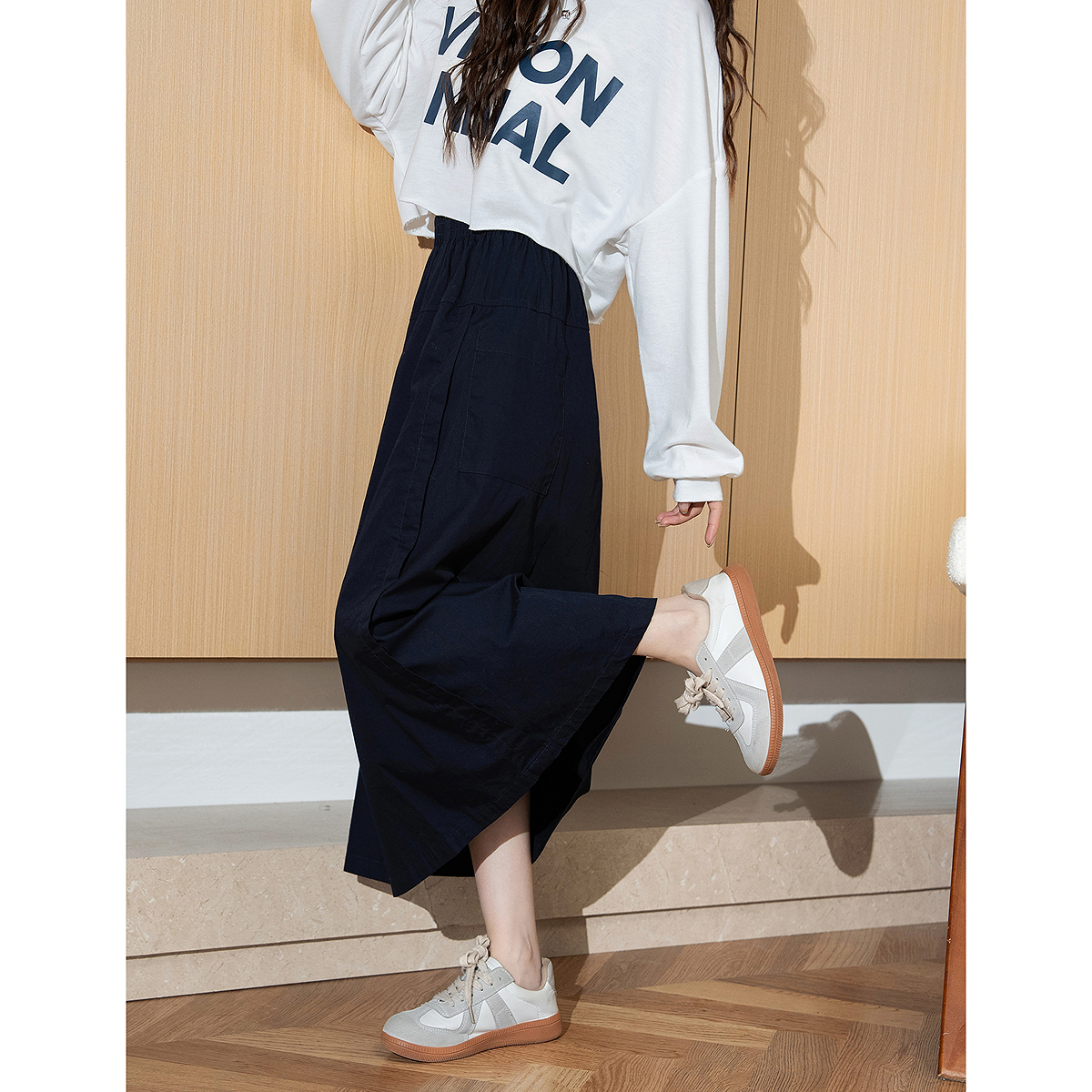 ゴムウエストで着心地抜群のスカートは、カジュアルにもきれいめにも合わせやすく、一年中活躍する万能アイテムです。