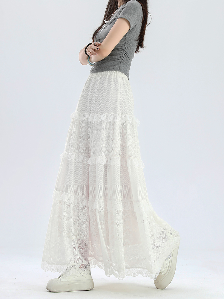 スカートとしての存在感がありながらも、ロングタイプならではの落ち着きのある美しさを演出します。
