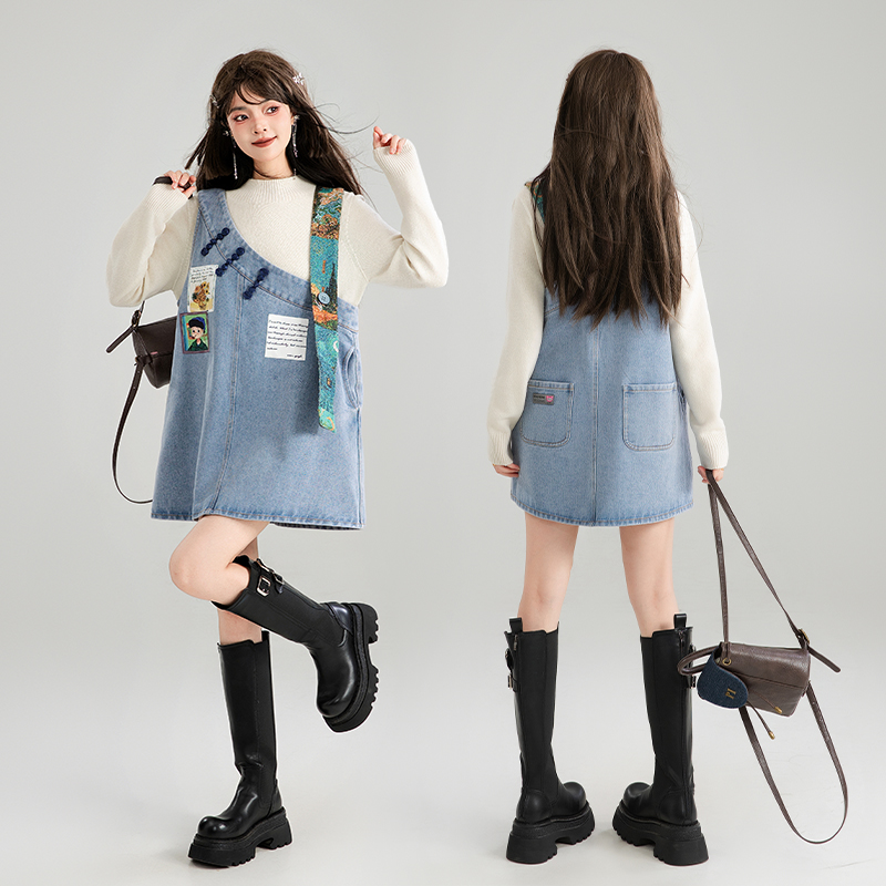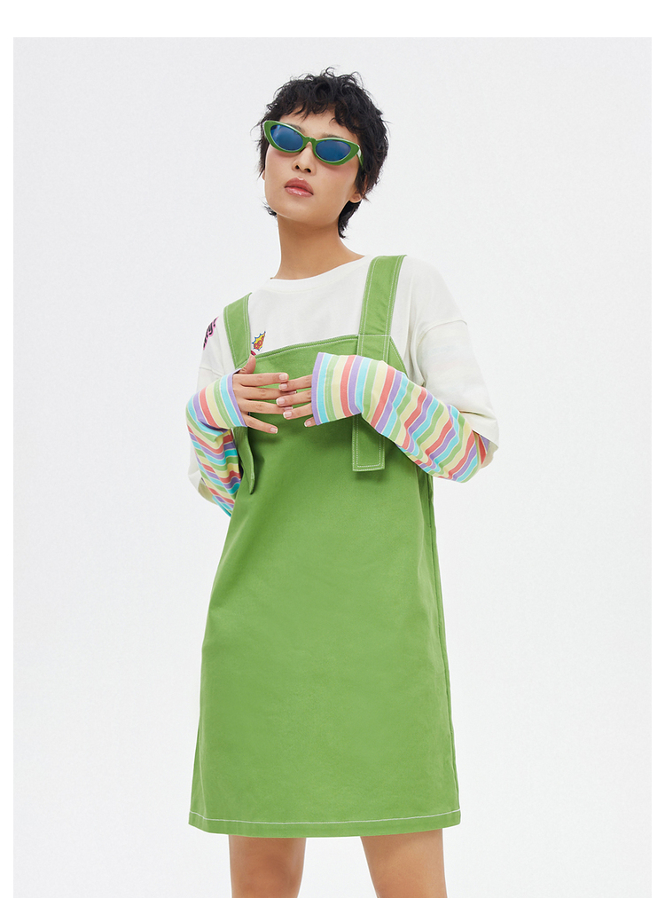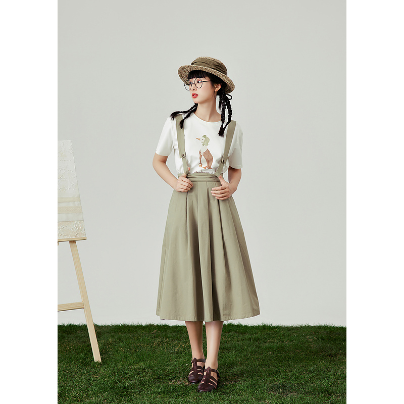 サスペンダー部分は取り外し可能で、様々な着こなしが楽しめるスカートです。
