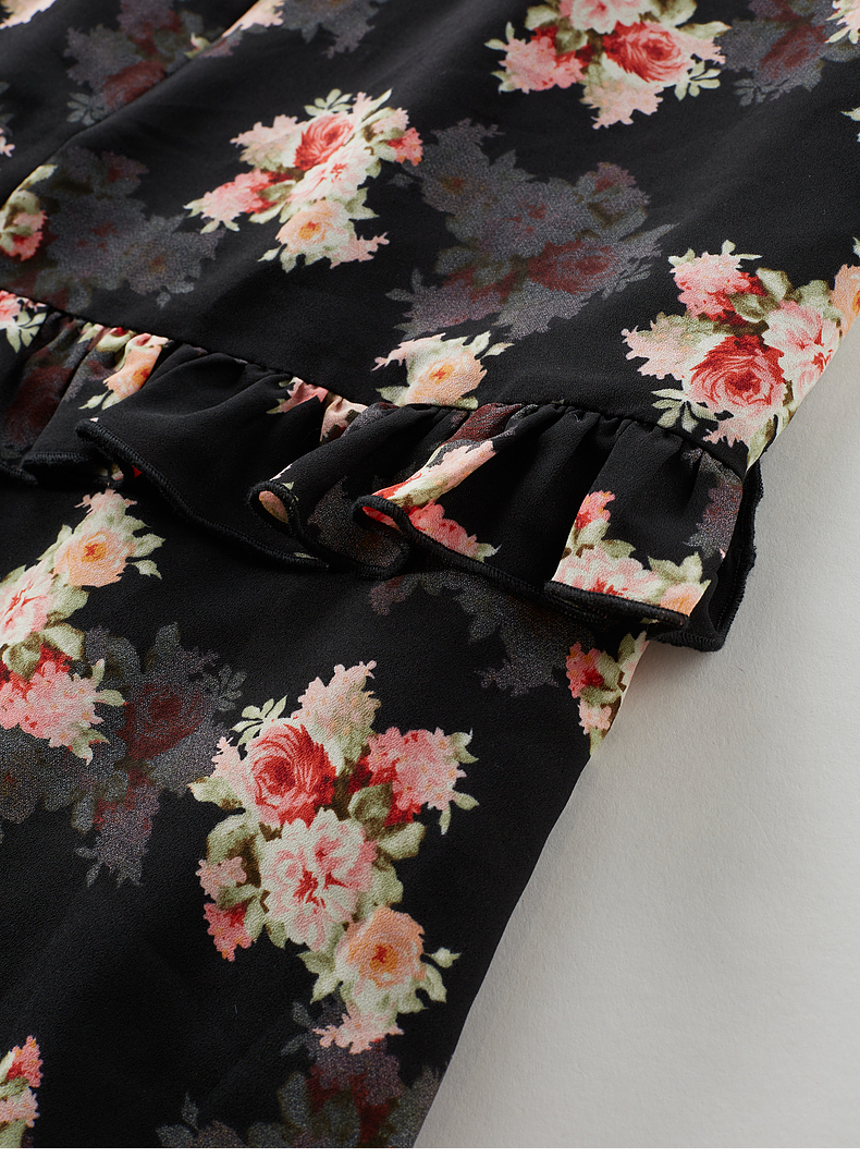 美しいドレープが特徴的で、ミモレ丈のスリットデザインが大人の魅力を引き立てます。